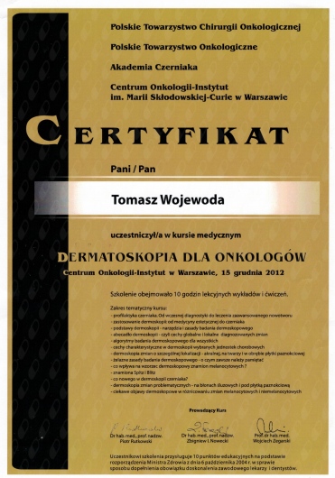 Jaki jest zakres porad oferowanych przez Tomasz Wojewoda?Tomasz Wojewoda to chirurg. Na podstawie swojego doświadczenia i wykształcenia Tomasz Wojewoda oferuje usługi takie jak: Konsultacja chirurgiczna, konsultacja chirurga onkologa, usuwanie zmian skórnych.
