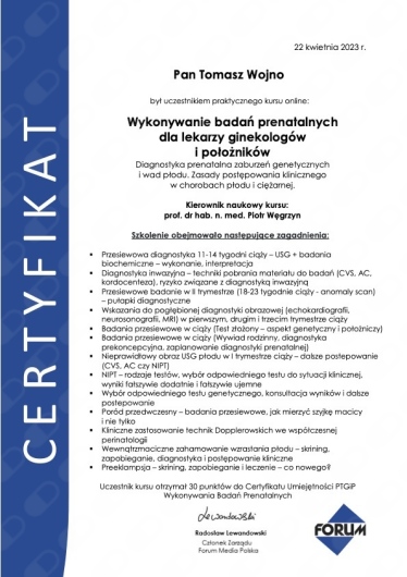 Dzien dobry czy u pana mozna zrobic trzecie badanie prenatalne 28-32 tydzien.Ja jestem w 30tygodniu ciazy mam skierowanie do poznania ale slyszalam ze mozna u pana zrobic.interesuje mnie tez koszt takiego badania