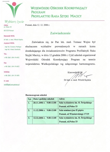 Administratorem danych osobowych jest ZnanyLekarz sp. z o.o. z siedzibą w Warszawie przy ul. Kolejowej 5/7. Informujemy, że po przekazaniu przez nas Twoich danych osobowych wybranemu przez Ciebie Profesjonaliście, staje się on również administratorem Twoich danych osobowych i przetwarza je w celach związanych ze świadczeniem usług medycznych lub innych podobnych.
