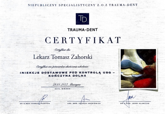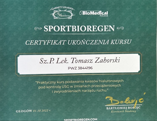 Jaki jest zakres porad oferowanych przez Tomasz Zahorski?Tomasz Zahorski to w trakcie specjalizacji (ortopeda). Na podstawie swojego doświadczenia i wykształcenia Tomasz Zahorski oferuje usługi takie jak: konsultacja ortopedyczna, blokada stawu, Blokada sterydowa, blokady dostawowe, dobór zaopatrzenia ortopedycznego, iniekcja dostawowa, iniekcja sterydowa dostawowa, iniekcja sterydowa okołostawowa, Iniekcja z kwasu hialuronowego, Iniekcja z osocza bogatopłytkowego – PRP.