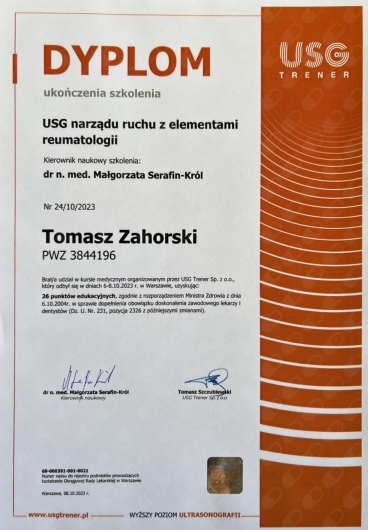 Polecam doktora Zahorskiego. Zgłosiłem się z bólem kolana. Podczas wizyty dokładnie mnie zbadał, wykonał USG. Ponadto dokładnie zobaczył wykonany rezonans stawu. Następnie zaproponował leczenie, które pomogło. Jestem bardzo zadowolony.