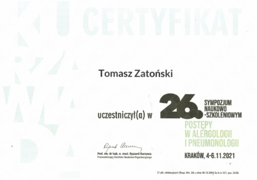 serdecznie dziękujemy za podzielenie się opinią oraz za polecenie wizyty u Pana Profesora Zatońskiego. Cieszymy się, że przeprowadzona konsultacja, analiza badania tomografii oraz szczegółowe omówienie dalszego postępowania pomogły w jasnym zrozumieniu problemu zdrowotnego i planu leczenia. Dla naszego zespołu niezwykle ważne jest, aby każda decyzja terapeutyczna była poprzedzona dokładną diagnostyką i spokojną rozmową z Pacjentem.