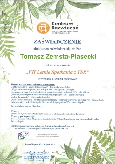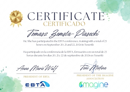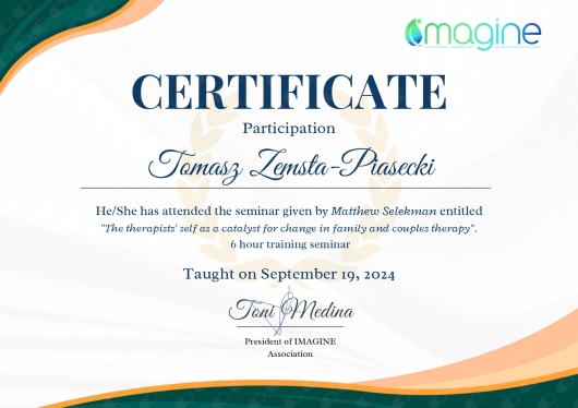 Tomek pomógł mi poradzić sobie z trudnym okresem w moim życiu. Najlepszym dowodem na skuteczność tej terapii niech będą słowa, które usłyszałem od żony po kilku miesiącach: „Chciałabym, żeby już zawsze tak było, jak jest teraz między nami”. Z czystym sumieniem polecam.• Dla Ciebie - Centrum Terapii Krótkoterminowej • konsultacja online (kolejna) •