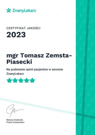 Czy Tomasz Zemsta-Piasecki przyjmuje online, bez konieczności pojawiania się w placówce?Tak, Tomasz Zemsta-Piasecki oferuje konsultacje online. Wybierz opcję „konsultacja online” przy umawianiu wizyty, a zobaczysz dostępne terminy.