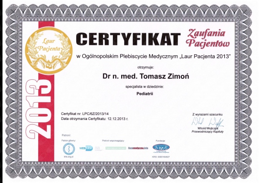 Dr. Tomasz to jedyny specjalista, któremu ufam i ze spokojem powierzam zdrowie mojego dziecka.
