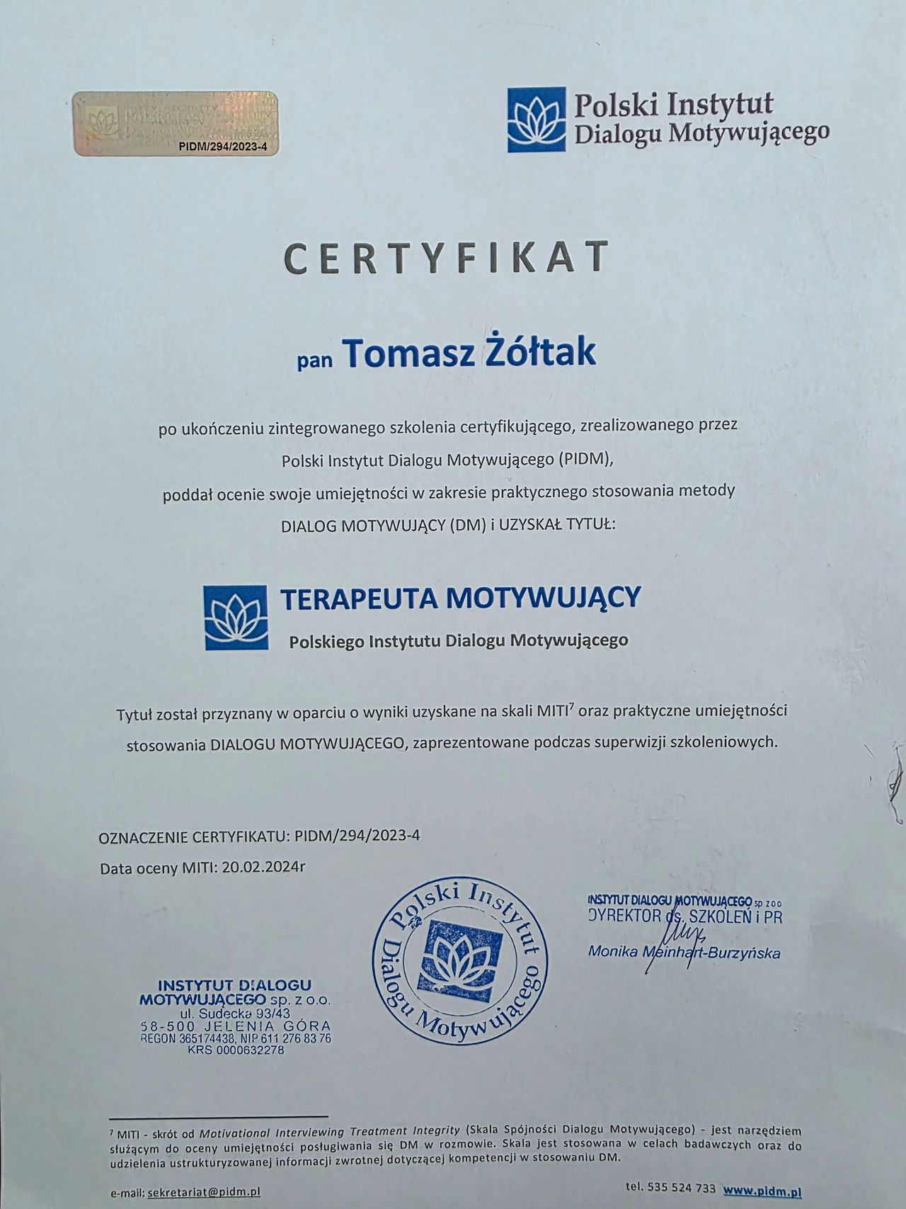 Lepiej trafić nie mogłam. Cieszę się, że właśnie z Panem Tomkiem mogłam pracować nad sobą przez 7 miesięcy. Efekty są niesamowite. Pełen zrozumienia, cierpliwości, towarzyszył mi w moich emocjach, nie oceniał. Polecam z czystym sumieniem