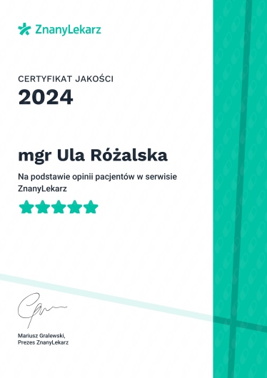 Czy Ula Różalska przyjmuje online, bez konieczności pojawiania się w placówce?Tak, Ula Różalska oferuje konsultacje online. Wybierz opcję „konsultacja online” przy umawianiu wizyty, a zobaczysz dostępne terminy.