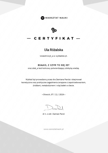Zachęciły mnie opinie i nie żałuję, pani Ula to bardzo miła pani i choć dopiero zacznę przygodę z jadłospisem to od razu mi się on spodobał, bo praktycznie wszystko co mi pani Ula ustaliła, jadam na co dzień z przyjemnością. Jestem zadowolona z podejścia do moich problemów zdrowotnych(przepuklina rozwoju przełykowego, wrażliwe kolana i przeciążony kręgosłup), samej byłoby mi ciężko ustawić sobie dietę przy tylu złączonych problemach.