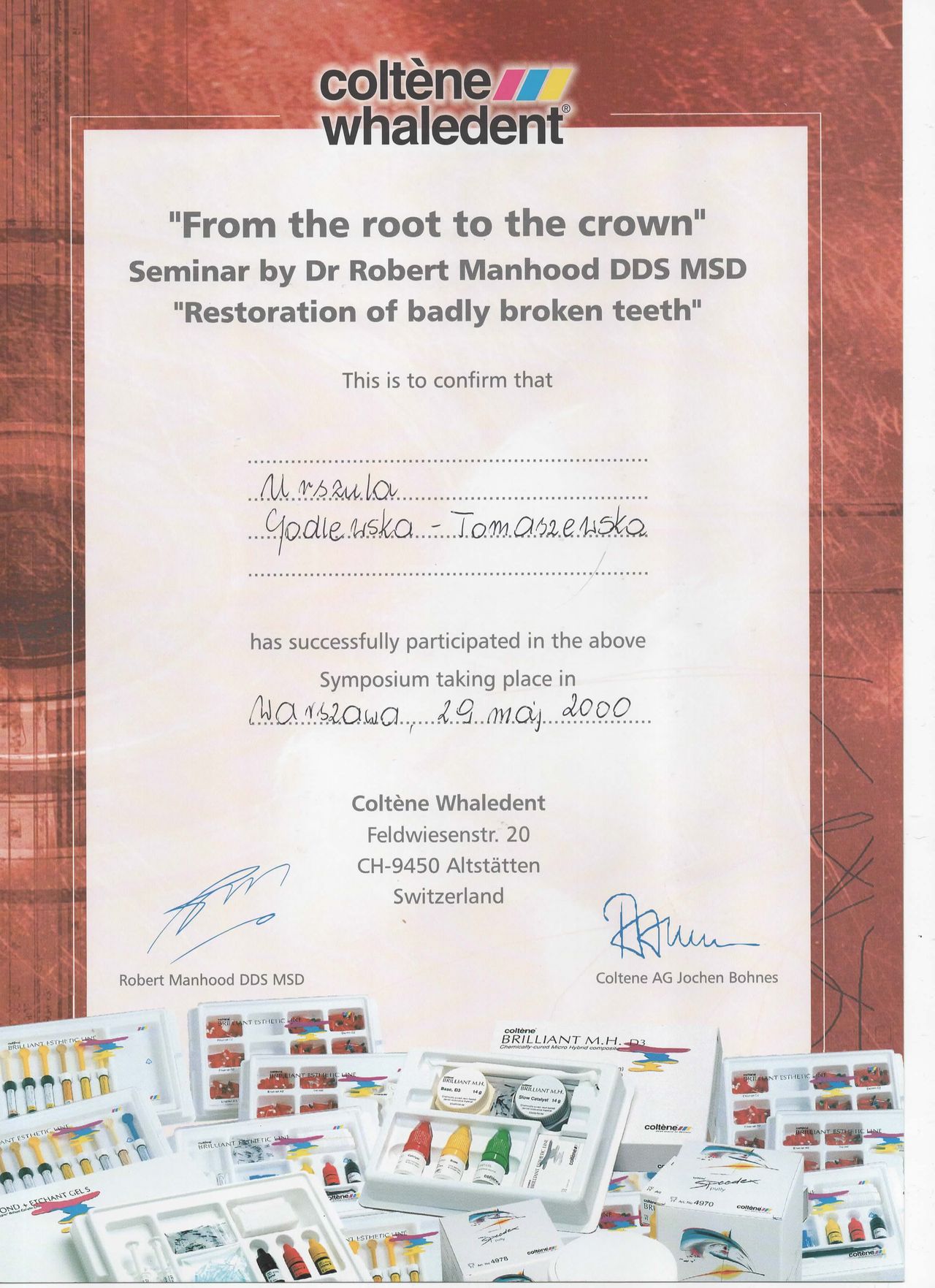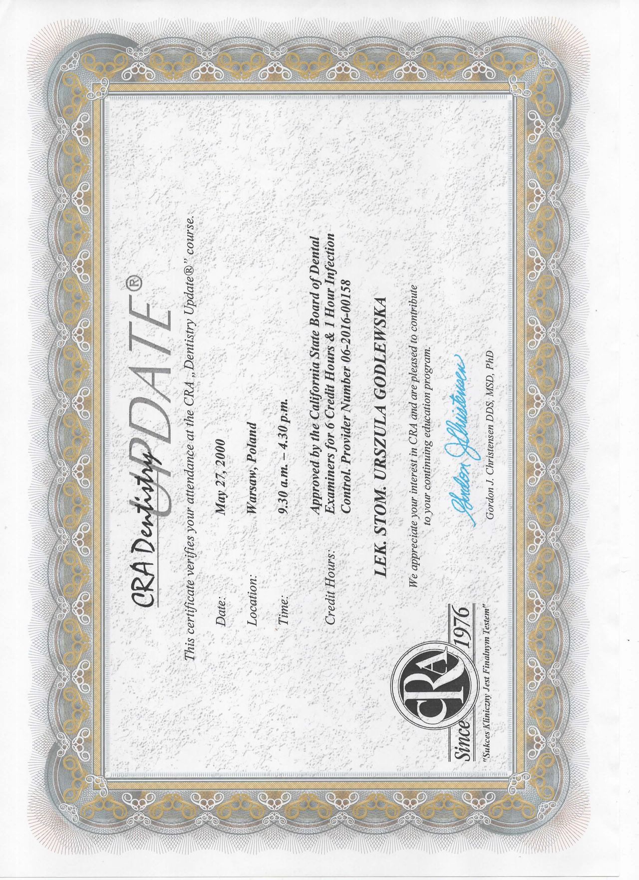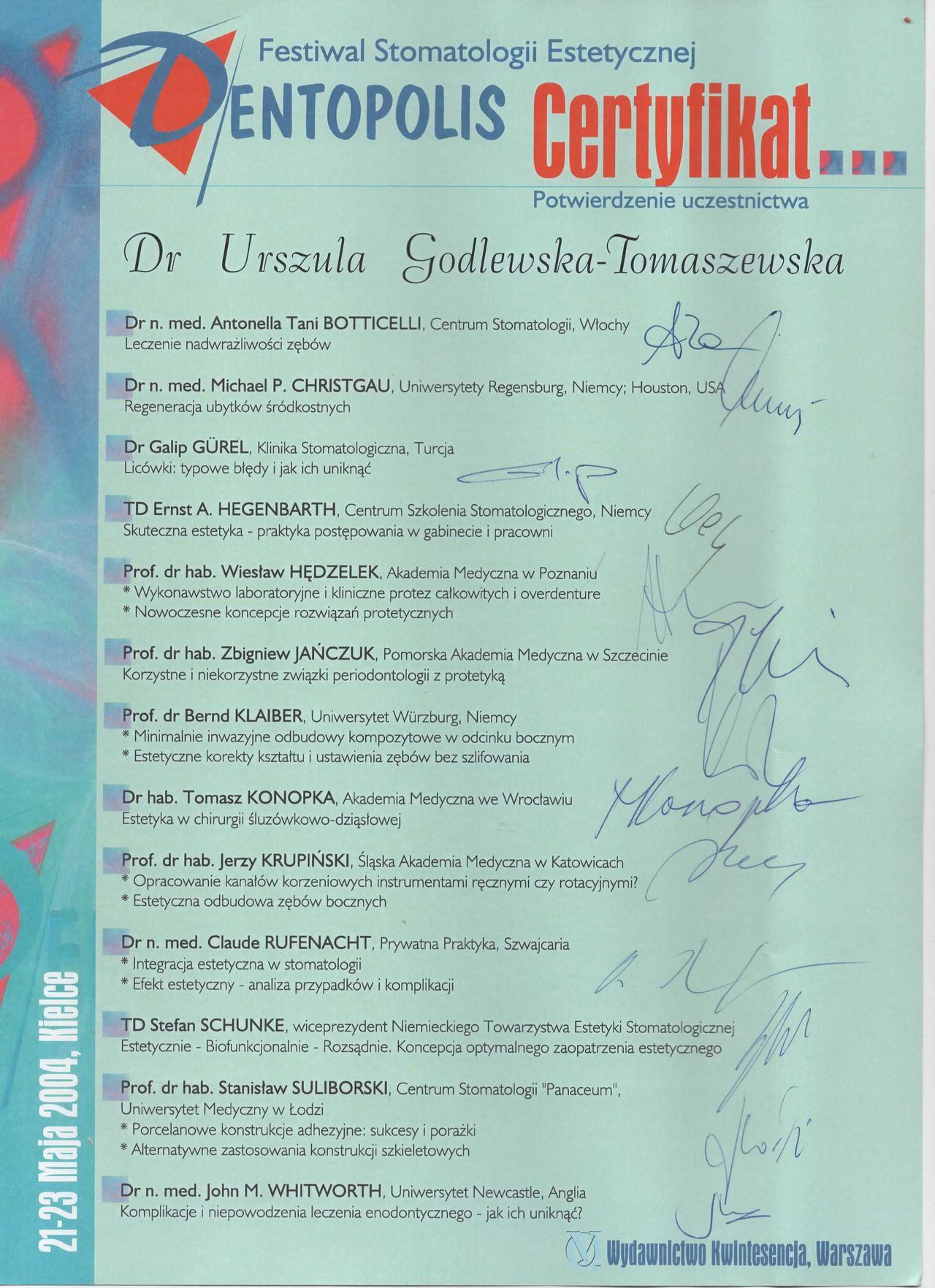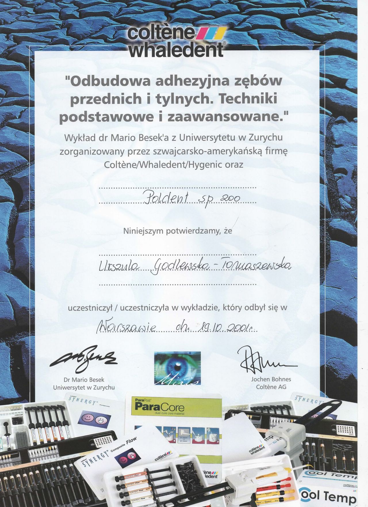 specjalista I stopnia stomatologii ogólnej z wieloletnim stażem. Zakres pracy klinice "Prestige Dental" stomatologia zachowawcza- nowoczesne lczenie zachowawcze w tym wypełnienie estetyczne zęba , bonding , lecznenie kanałowe w mikroskopie - pierwotne ,lecznenie kanałowe w mikroskopie- powtórne , protetyka - korony i mosty , protezy ruchome , implantologia- implantacja natychmiastowa oraz odroczona , augmentacja kości wyrostka , podniesienie zatoki szczękowej , zaburzenia stawu skroniowo - żuchwowego .Posiada bardzo bogate i wieloletnie doświadczenie zdobyte podczas pracy w renomowanych klinikach stomatologicznych w Białymstoku i Warszawie. Uczestnik wielu kursów specjalistycznych w Polsce oraz Niemczech, gdzie na bieżąco podnosi swoje kwalifikacje zawodowe. Biegle włada językiem angielskim i rosyjskim. , komunikatywny niemiecki O klinice Prestige Dental -nowoczesna klinika otwarta na warszawskim Żoliborzu w 2013 roku Naszym głównym celem jest oferowanie Państwu najwyższej jakości, kompleksowych usług stomatologicznych przy zachowaniu wysokich rygorów higieny i sterylności. Wieloletnie doświadczenie zaowocowało powstaniem wyjątkowej kliniki, w której duży nacisk kładziemy na profesjonalizm usług. Kadrę kliniki stanowią wysokiej klasy specjaliści, zarówno lekarze, jak i asysta stomatologiczna. Kładziemy nacisk na najwyższe standardy pracy, nowoczesne wyposażenie oraz cykliczne szkolenia całego personelu. Najwyższej jakości niemiecki sprzęt stomatologiczny oraz diagnostyczny pozwala na prowadzenie profesjonalnego leczenia w jednym miejscu. Dysponujemy m.in urządzeniem do wykonywania pantomogramów cyfrowych oraz mikroskopem. Naszym celem, jest pełna satysfakcja i dobro wszystkich naszych Pacjentów. Jesteście Państwo mile widziani. Zapraszamy do skorzystania z usług.