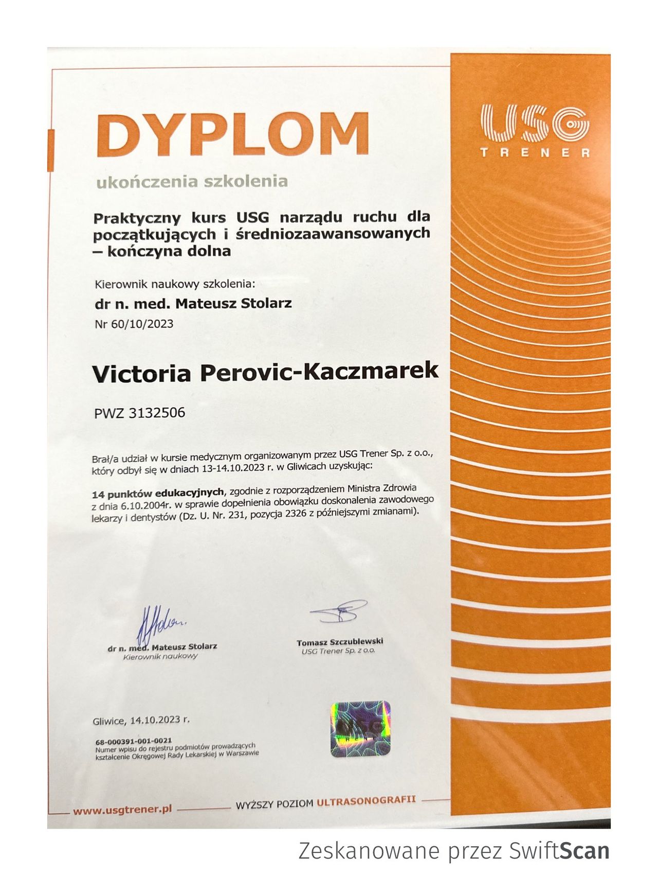 Odbyłam liczne szkolenia z ultrasonografii narządu ruchu w Polsce oraz zagranicą.