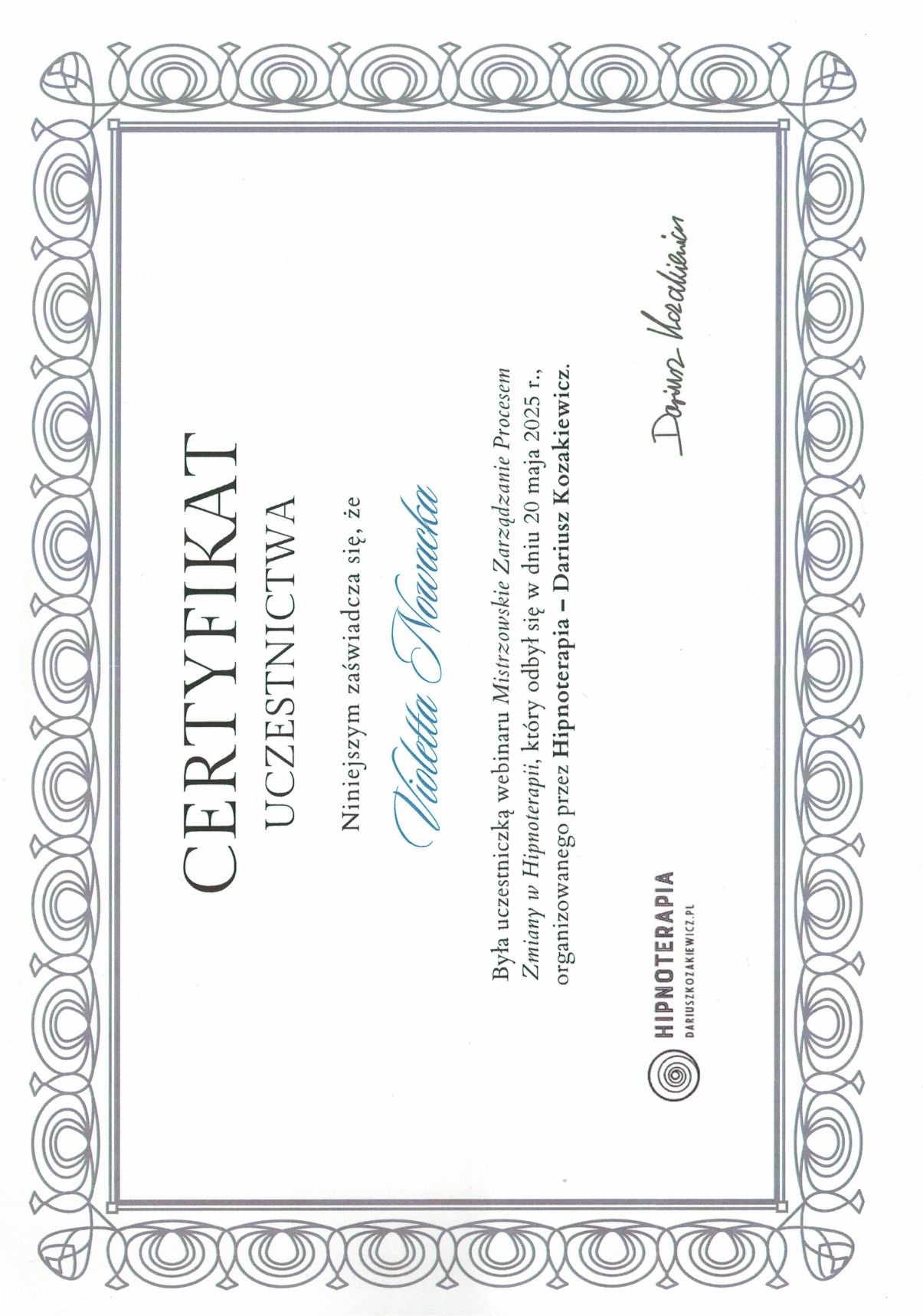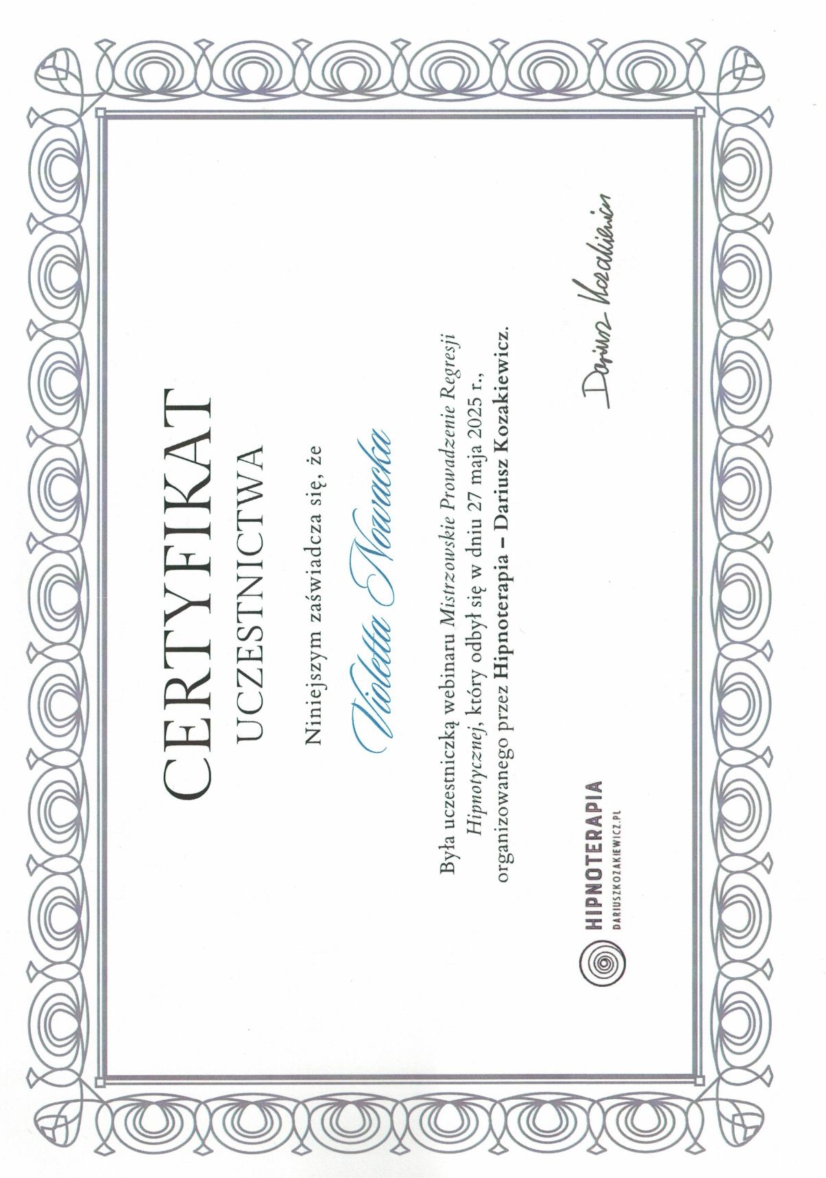 Wszystkim powtarzam, że spotkania z Panią Violettą są warte każdej ceny i każdego czasu oczekiwania. Niesamowicie dopasowuje rozwiązania do mojej osoby i wszystko wyłapuje, ogromna wiedza i skuteczność, jestem wręcz wzruszona. Aktualnie nasza współpraca trwa rok i 3 miesiące.