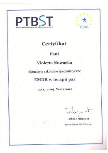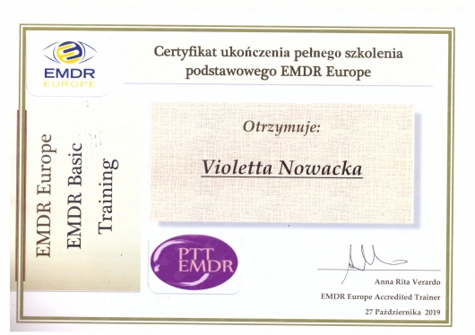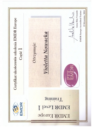Pani Violetto, dziękuję za terapię EMDR. Długo jestem na ścieżce rozwoju, przyglądając się sobie, mechanizmom rządzącym człowiekiem. Metoda EMDR przyciągnęła mnie by uporać się z jakimś wewnętrznym przeczuciem, że gdzieś głęboko we mnie jest coś, czego sama nie uleczę, coś co jest przyczyną wielu programów, które rządzą mną podświadomie. Choć umysł negował zasadność sesji, uważał, że wszystko jest dobrze, umniejszał metodzie, powodom, wypierał wspomnienia, stawał opór (kontuzja stopy dzień przed sesją) , zmierzyłam się z tym. Zadziały się cuda! To było niczym domino uzdrawiające wszystkie kompleksy, blokady, zachowania, których w sobie nie lubiłam. Proces nadal trwa ale już bez udziały Terapeuty. Terapia EMDR robi taką robotę, że ma się ochotę porównać to do odgruzowywania śmieci małą łopatką versus koparką. EMDR to wielka kopara, która 2-3 sesjami pozbywa się z umysłu (podświadomości) tony śmieci a dalej jest już tylko uważność, wdzięczność i radość. Dziękuję Pozdrawiam, Ewelina