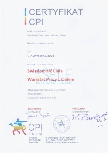 Violetta Nowacka to specjalistka najwyższej klasy, która ciągle się rozwija, pisze książki i wzbogaca swój warsztat pracy o nowe metody i narzędzia. Jej profesjonalizm i wielka empatia budzą zaufanie, a do gabinetu SELF łatwo trafić, bo ma dobrą lokalizację. Moje sesje z p. Violą zawsze procentowały, choć ich przebieg nie zawsze był dla mnie łatwy, kiedy dochodziły do głosu trudne emocje. Metoda hipnoterapii ujarzmiła moje lęki, a mój mózg testuje teraz nowe połączenia neuronowe. Nie będę mu przeszkadzać. Dziękuję!