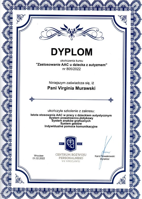 Pani Virginia Murawski to wspaniały psycholog dziecięcy. Ma świetne podejście do dzieci, potrafi szybko zyskać ich zaufanie i stworzyć ciepłą, bezpieczną atmosferę. Jest niezwykle empatyczna, ciepła i profesjonalna, posiada ogromną wiedzę. Potrafi uważnie słuchać i trafnie wskazywać źródła problemów. Serdecznie polecam!