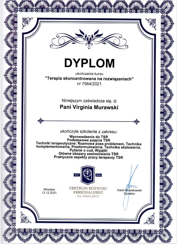 Pani Murawski jest bardzo wspierająca,empatyczna,profesjonalna,cierpliwa. Z całego serca polecam.