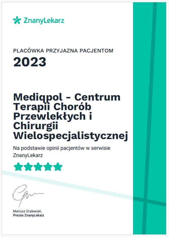 Z szacunku dla Pacjentów czekających na wizytę, uprzejmie prosimy o informowanie nas o ewentualnej rezygnacji najpóźniej 12 godzin przed umówionym spotkaniem — telefonicznie, SMS-em lub online.