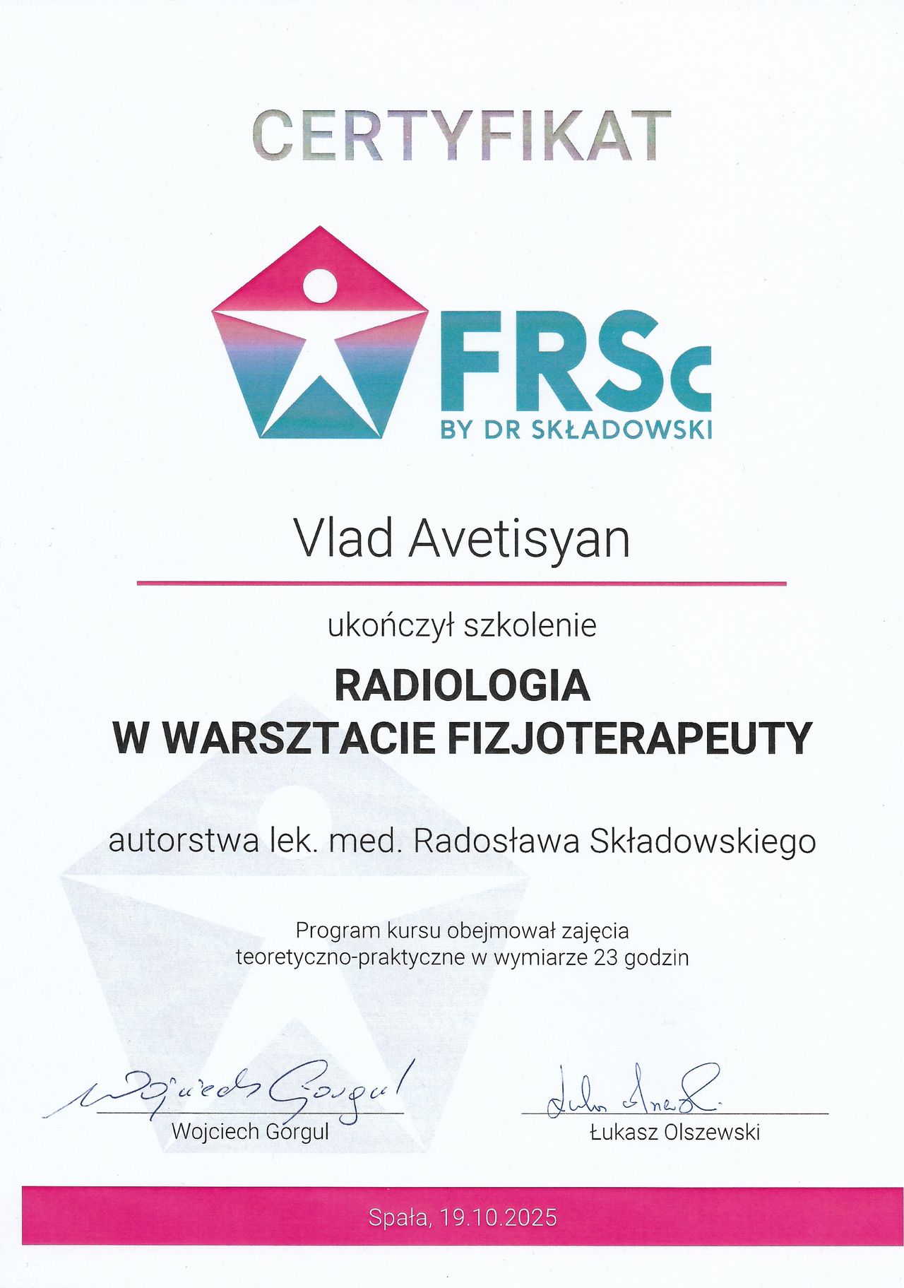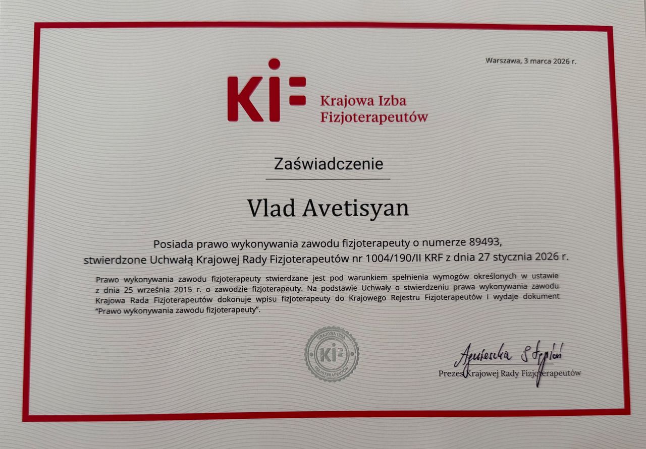 Profesjonalista z ogromną wiedzą i indywidualnym podejściem do pacjenta. Wizyta odbyla się w miłej atmosferze w trakcie, której Pan Vlad wyjaśnił przyczyny bólu kolan, sposoby leczenia jak również jakie ćwiczenia mam wykonywać aby ból nie wracał. Pełen profesjonalizm i zaangażowanie sprawiły, że poczułam się zaopiekowana i wspierana w procesie powrotu do zdrowia.