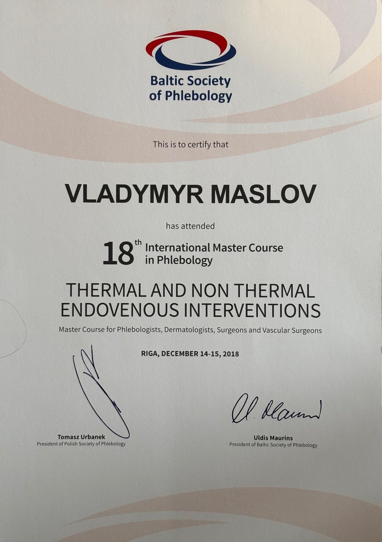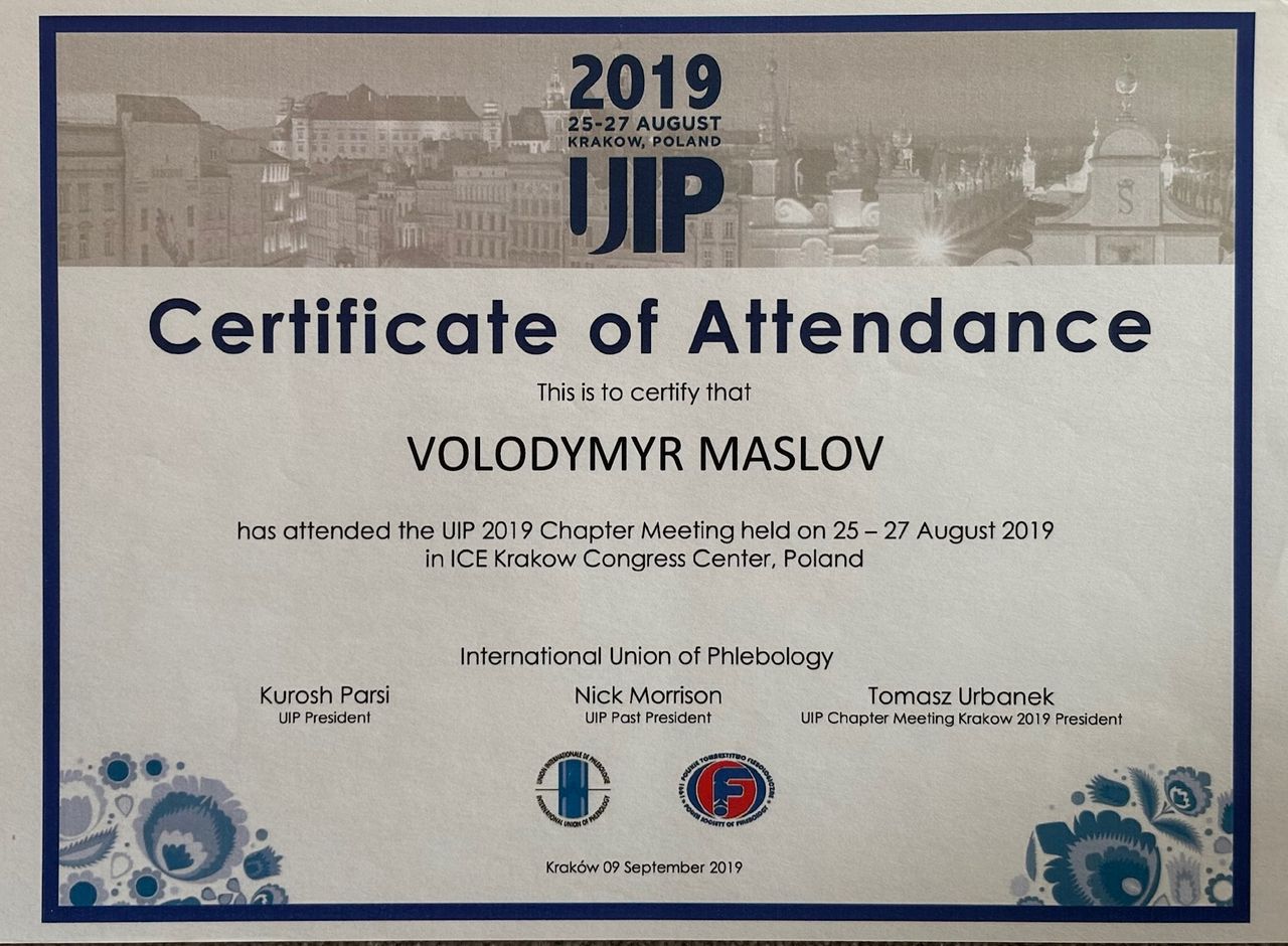 Następnie kontynuowałem kształcenie specjalistyczne w dziedzinie chirurgii naczyniowej w Ukraińskiej Wojskowej Akademii Medycznej w Kijowie.