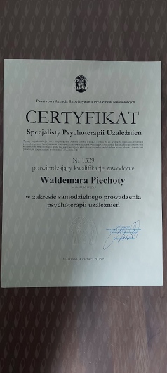 Zajmuję się również leczeniem uzależnienia od alkoholu, substancji psychoaktywnych, hazardu i innych uzależnień behawioralnych. Pomagam osobom z tzw. Syndromem DDA (Dorosłe Dziecko Alkoholika) i DDD (Dorosłe Dziecko z rodziny Dysfunkcyjnej) przepracować traumatyczne doświadczenia z dzieciństwa.