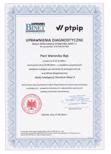 Jestem po dwóch spotkaniach w związku z diagnozą ADHD z Panią Weroniką. Miało być jedno spotkanie dwugodzinne ale nie starczyło nam czasu więc Pani Weronika dała spotkanie ekstra żeby na spokojnie dokończyć test. Czułem się nawet całkiem swobodnie mimo że zjadał mnie strasznie stres.