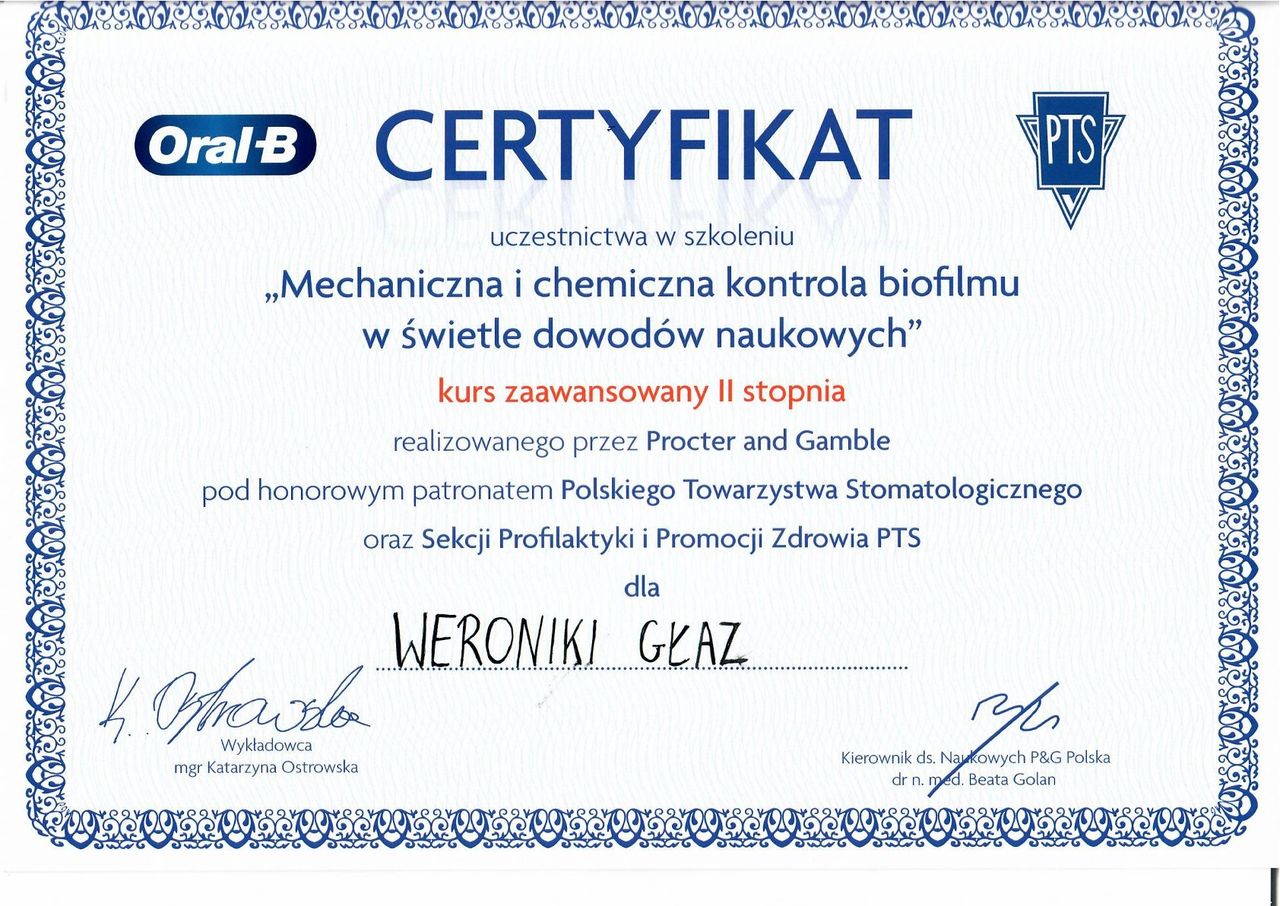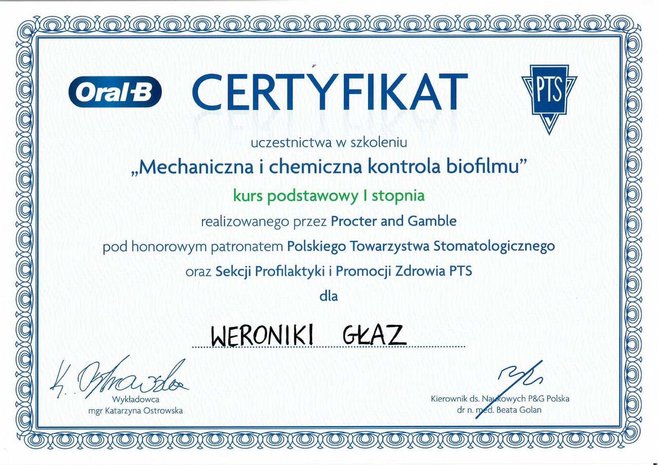 Jesteś już po wizycie u lek. dent. Weronika Głaz? Daj znać, co myślisz. Inni pacjenci będą wdzięczni za pomoc w wyborze najlepszego specjalisty.