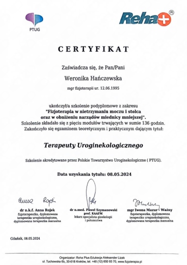 Obecnie jestem na czwartym roku studiów medycyny osteopatycznej w Akademii Osteopatii w Poznaniu. Rozpoczęłam również Master Course z Osteopatii w Pediatrii, aby w przyszłości móc zajmować pacjentami od pierwszych dni życia. Ukończyłam 6-modułowy kurs z fizjoterapii uroginekologicznej akredytowany przez Polskie Towarzystwo Uroginekologiczne. Poszerzanie swojej wiedzy pozwala mi na poznawanie najnowocześniejszych metod terapii stosowanych na świecie i wykorzystywanie ich w pracy z pacjentem w gabinecie.
