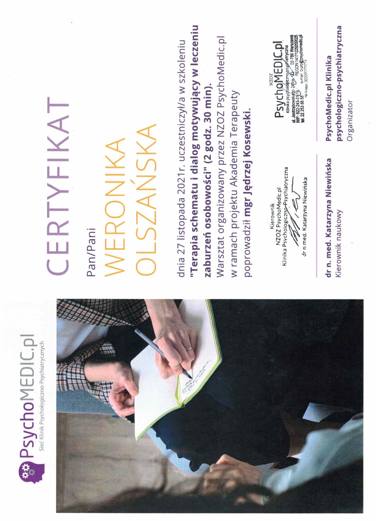 Pani Weronika pomogła mi zrozumieć moje schematy i jak powinnam sobie z nimi radzić. Dzięki terapii potrafię odczytać lepiej siebie i swoje emocje, i wiem jak radzić sobie z okresami depresyjnymi czy obsesyjnymi myślami. Choć ta lekcja siebie nigdy się nie kończy, z Panią Weroniką przerobiłam gruby rozdział. Pani Weronika jest profesjonalna, ma dużą wiedzę, jest zaangażowana w klienta i empatyczna. Jestem jej bardzo wdzięczna, serdecznie polecam.