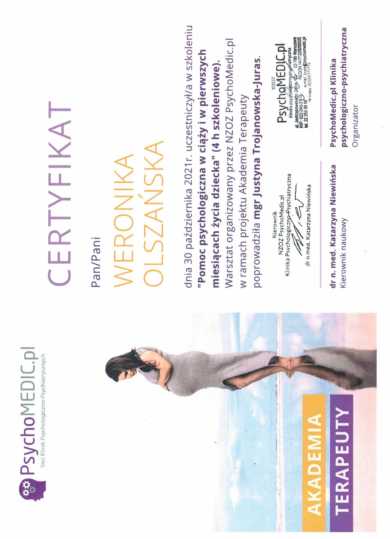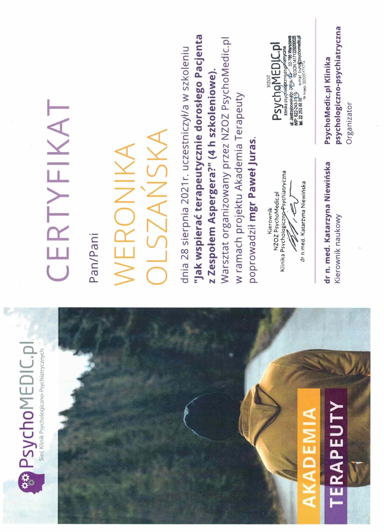 Pani Weronika jest wspaniałym terapeutą z profesjonalnym jednocześnie bardzo empatycznym podejściem. Bardzo uważnie słucha i pamięta nawet najmniejsze szczegóły, dzięki temu można poczuć się naprawdę wysłuchanym. Spotkania z Panią Weronika pomogły mi nauczyć się radzić sobie z trudnymi sytuacjami - dostałam pakiet instrukcji jak samodzielnie mogę wyjść z trudnych momentów .Bardzo polecam!