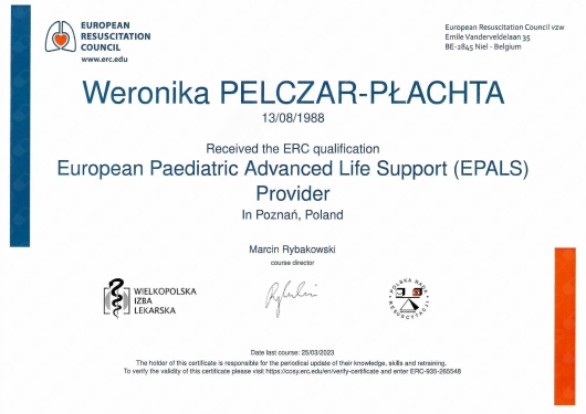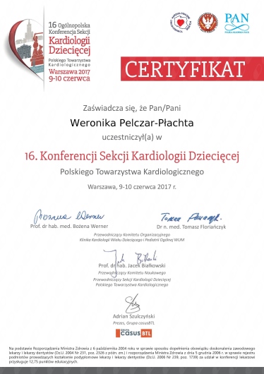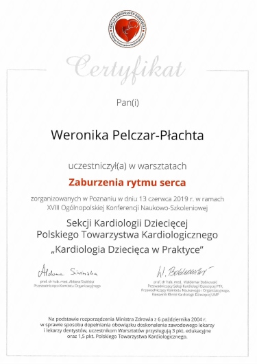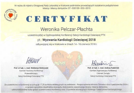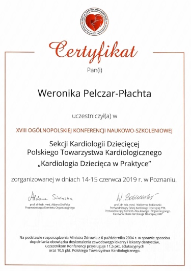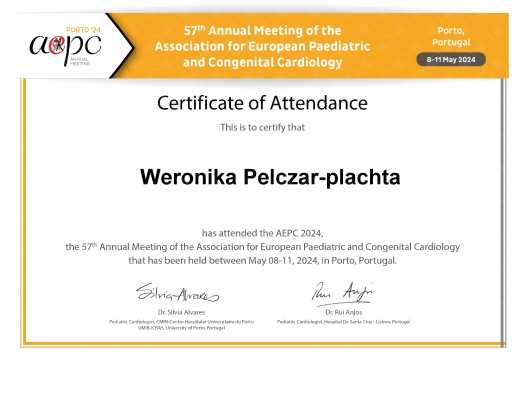 Jestem aktywną członkinią organizacji naukowych: Europejskiego Towarzystwa Kardiologii Dziecięcej