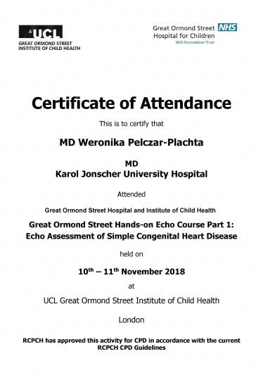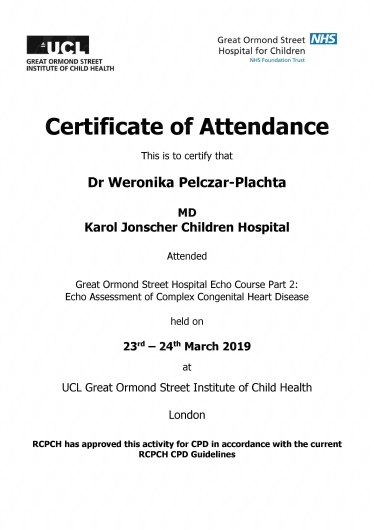 za granicą. Uczestniczyłam między innymi w kursie echokardiografii dziecięcej w Great Ormond Street Hospital