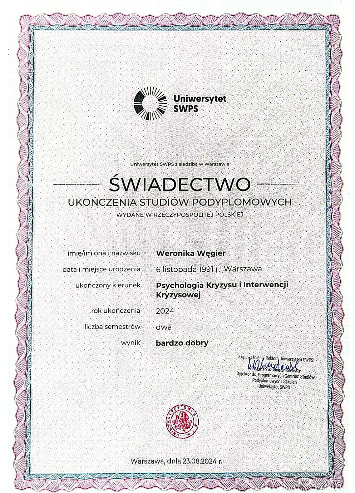 Jaki jest zakres porad oferowanych przez Weronika Węgier?Weronika Węgier to psycholog, psychotraumatolog. Na podstawie swojego doświadczenia i wykształcenia Weronika Węgier oferuje usługi takie jak: Konsultacja psychologiczna, psychotraumatologia, Konsultacja psychologiczna online, interwencja kryzysowa online.