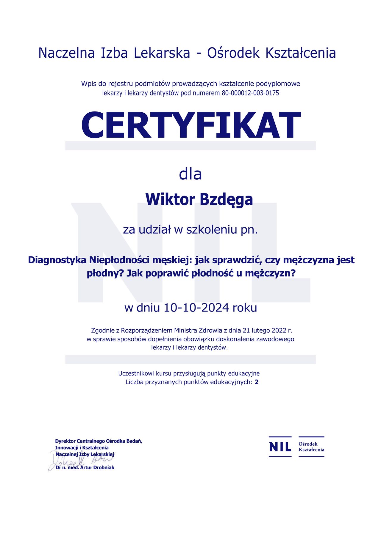 W trakcie specjalizacji (Androlog)