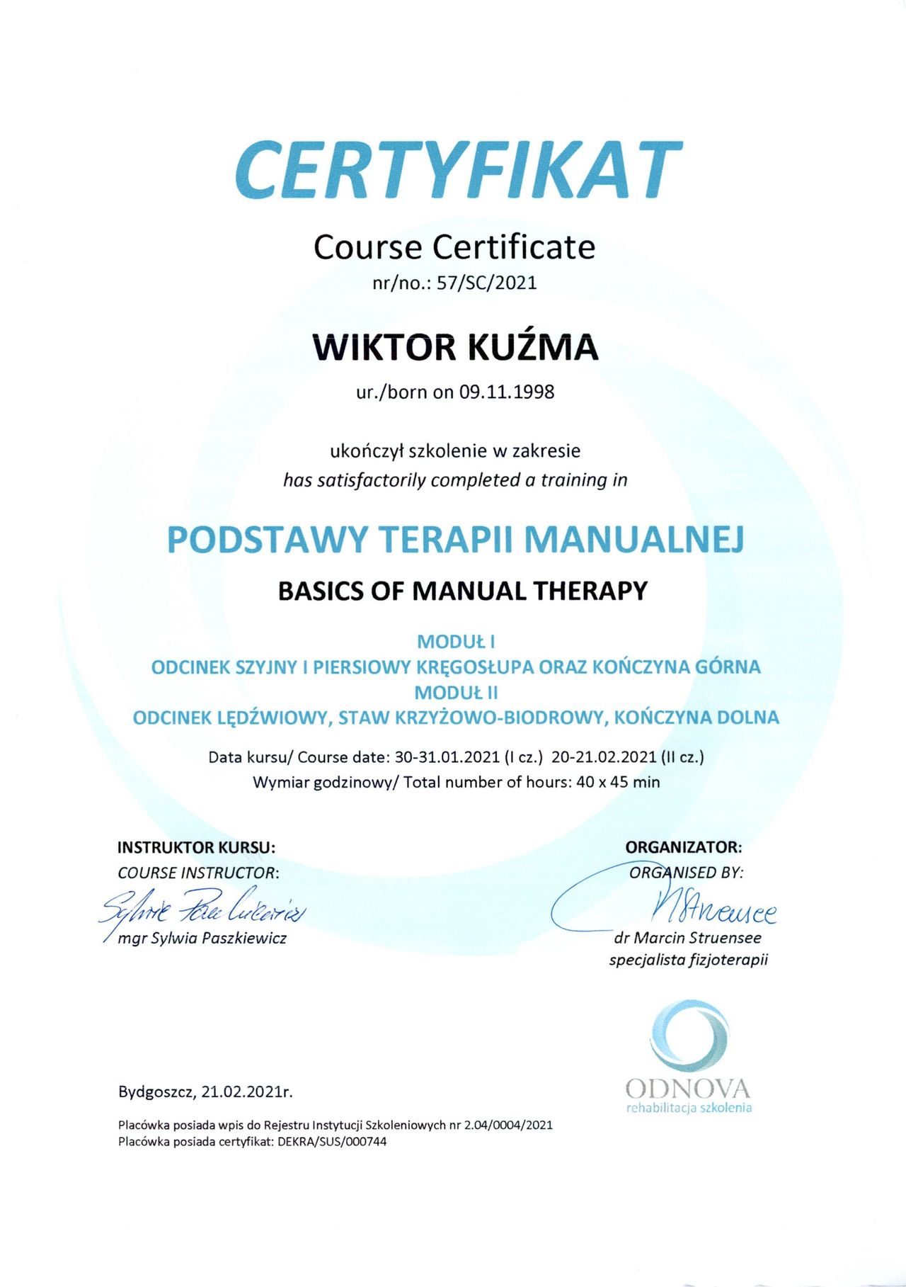 Serdecznie dziękuję za opinię. Cieszę się, że mogłem wszystko dokładnie wyjaśnić i pomóc w powrocie do sprawności. Takie słowa są dla mnie ogromną motywacją do dalszej pracy. Dziękuję za polecenie!