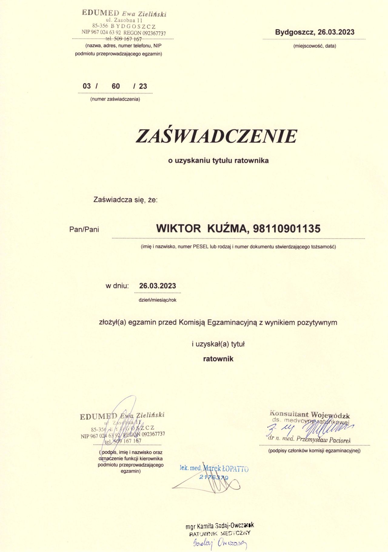 Polecam się na przyszłość i życzę zdrowia