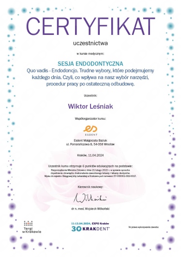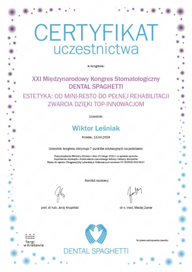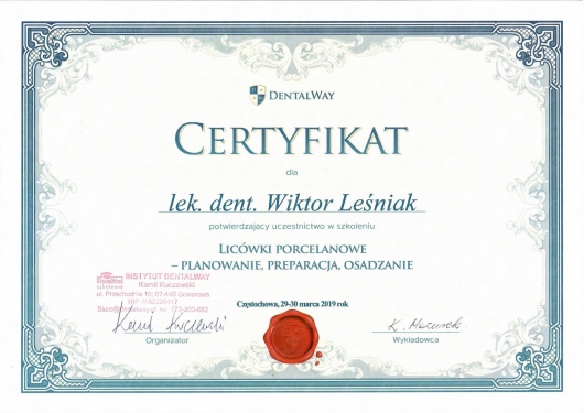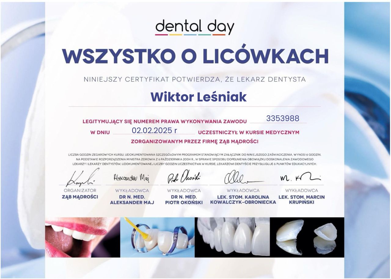 Bardzo mi miło, dziękuję za opinię i pozdrawiam. Lek. Dent. Wiktor Leśniak