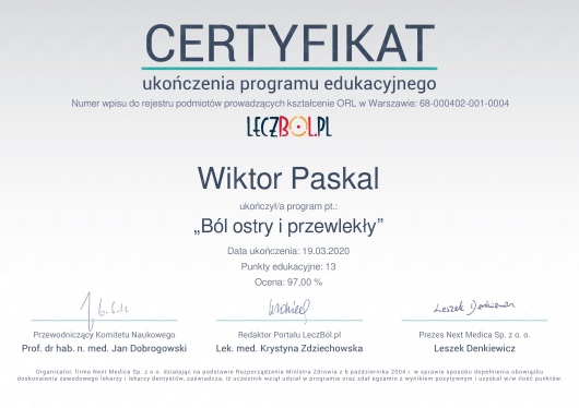 Wiktor Pascal: co mówią pacjenci?100 osób dodało swoją opinię. Wiktor Pascal ma średnią ocen 5 (na 5 gwiazdek).