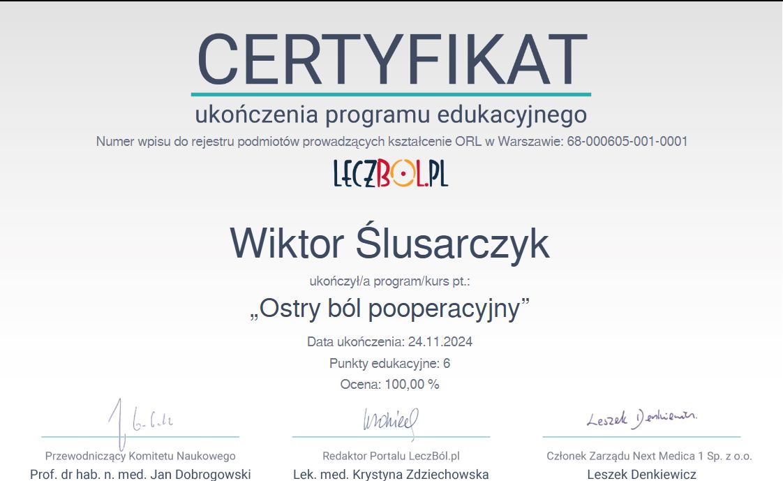Jesteś już po wizycie u Wiktor Ślusarczyk? Daj znać, co myślisz. Inni pacjenci będą wdzięczni za pomoc w wyborze najlepszego specjalisty.