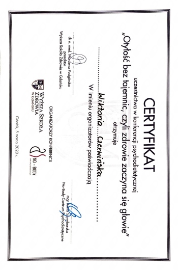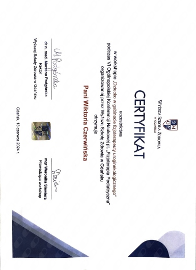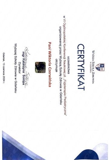Jestem absolwentką Wyższej Szkoły Zdrowia w Gdańsku, gdzie ukończyłam kierunek Fizjoterapia. Jako specjalista fizjoterapeuta zajmuję się leczeniem dzieci (od 4 roku życia), młodzieży oraz dorosłych. Moje główne obszary zainteresowań to terapia dzieci i młodzieży w zakresie wad postawy, asymetrii, schorzeń neurologicznych oraz zaburzeń rozwoju. Podczas pracy z pacjentami wykorzystuję elementy metody Vojty, NDT Bobath oraz MEDEK. Dodatkowo specjalizuję się w terapii dorosłych cierpiących na przewlekły ból narządu ruchu, szczególnie związany z zespołami bólowymi kręgosłupa oraz napięciowymi bólami głowy. Zajmuję się także fizjoterapią stomatologiczną zarówno dzieci (od 4 r.ż.), jak i dorosłych. Podczas terapii kładę szczególny nacisk na indywidualne podejście do każdego pacjenta, bazując na wzajemnym szacunku i zrozumieniu potrzeb zarówno dzieci, jak i ich rodziców czy opiekunów. Zależy mi na tym, aby najmłodsi pacjenci chętnie angażowali się w proces leczenia, czerpiąc z niego radość, a nie odczuwając przymus czy znudzenie. Moje doświadczenie zawodowe poszerzałam podczas praktyk w Ośrodku Wczesnej Interwencji i Wspomagania Rozwoju w Gdańsku. Stale rozwijam swoje kompetencje uczestnicząc w szkoleniach i kursach, które zapewniają mi nowoczesne narzędzia pracy oraz pogłębiają wiedzę, niezbędną do efektywnej terapii. Poza pracą zawodową, moje zainteresowania skupiają się na muzyce (śpiewie i grze na gitarze), amatorskiej fotografii, pieczeniu ciast, decoupage oraz wyszywaniu. Jestem także miłośniczką zwierząt i pasjonatką kultury różnych krajów. Prawo wykonywania zawodu fizjoterapeuty: nr 83629