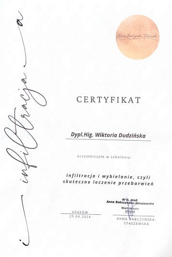 Jestem bardzo zadowolona z wizyty. Pani Wiktoria Dudzińska jest bardzo sympatyczna, delikatna i dokładna.