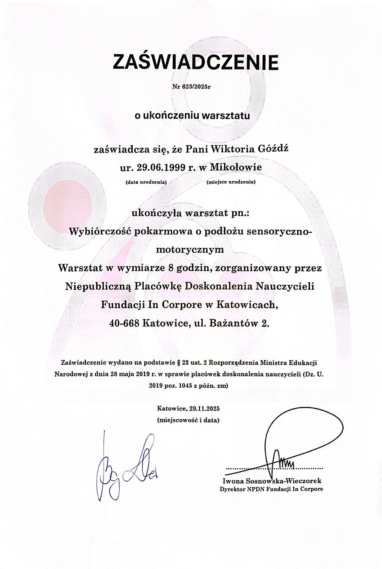 Obecnie rozwijam swoje kompetencje w nurcie psychoterapii poznawczo-behawioralnej (CBT) w certyfikowanej szkole psychoterapii.