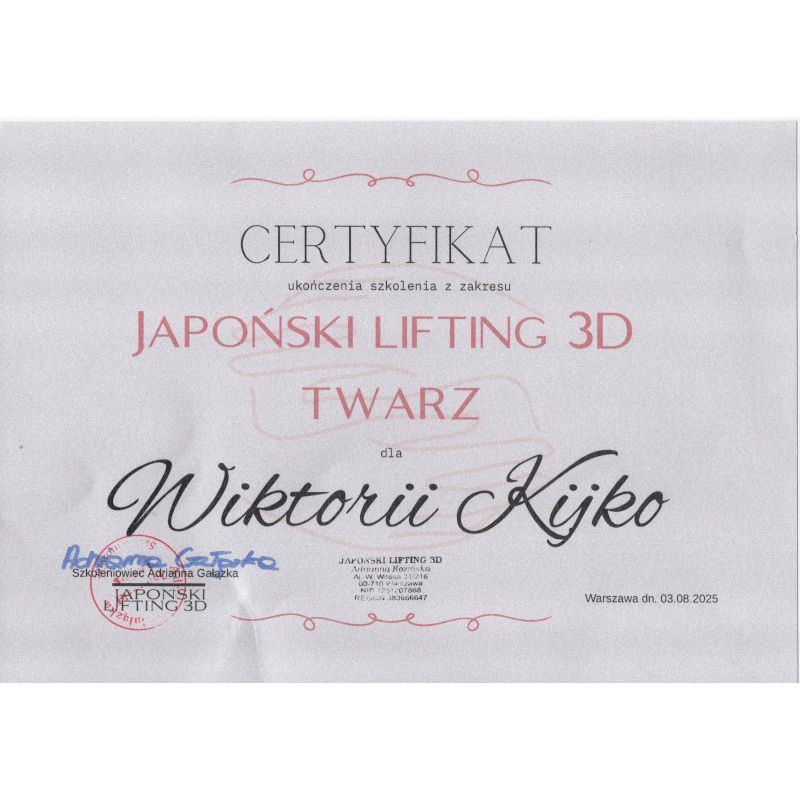 W moim gabinecie oferuje również naturalne metody liftingu bez skalpela – m.in. masaż PhysioKobido i Japoński Lifting Twarzy – które wspierają odmładzanie twarzy, poprawę napięcia mięśniowego i ogólnej kondycji skóry.