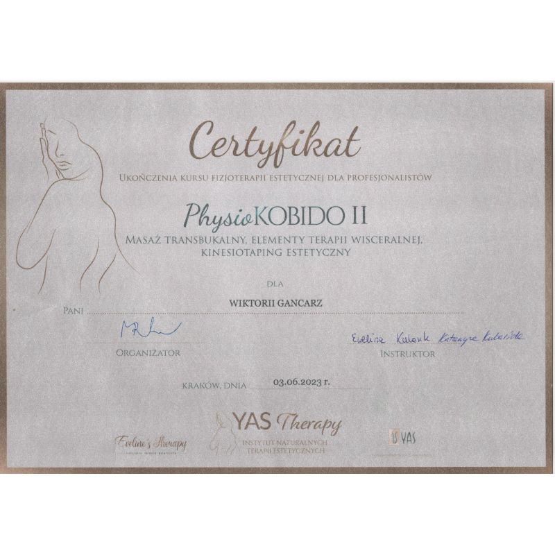 Jaki jest zakres porad oferowanych przez Wiktoria Kijko?Wiktoria Kijko to fizjoterapeuta. Na podstawie swojego doświadczenia i wykształcenia Wiktoria Kijko oferuje usługi takie jak: fizjoterapia estetyczna, fizjoterapia stomatologiczna, konsultacja fizjoterapeutyczna, Drenaż limfatyczny.
