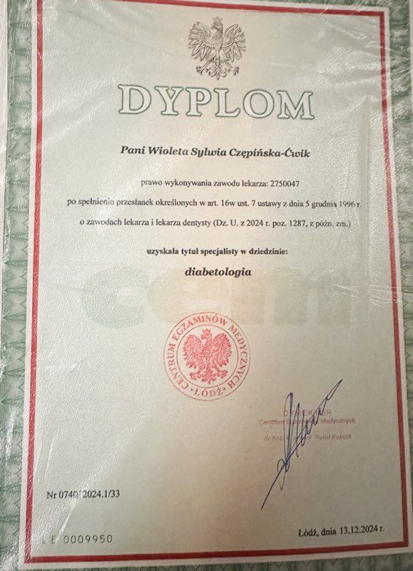 Pani doktor Wioleta Czępińska-Ćwik to lekarz z prawdziwego powołania. Już od pierwszych chwil wizyty widać jej ogromne zaangażowanie i troskę o pacjenta. Podchodzi do każdego przypadku indywidualnie, z pełnym profesjonalizmem i cierpliwością, tłumacząc wszystkie zagadnienia w sposób jasny i zrozumiały. Jej wiedza medyczna, szczególnie w zakresie diabetologii i chorób wewnętrznych, budzi ogromne zaufanie – czułem, że jestem w najlepszych rękach.