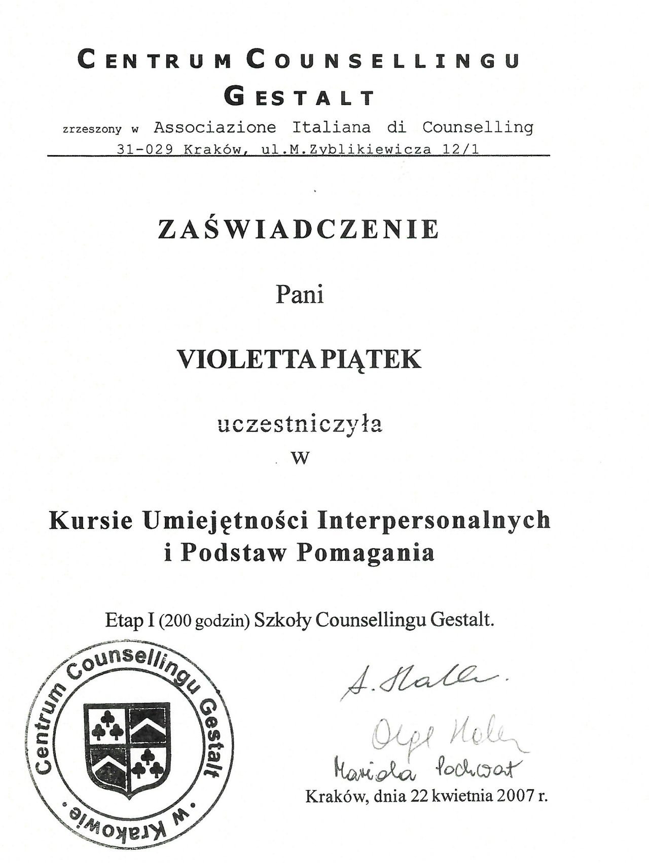Gdzie Wioletta Polańska ma swój gabinet?Wioletta Polańska przyjmuje pod adresem: