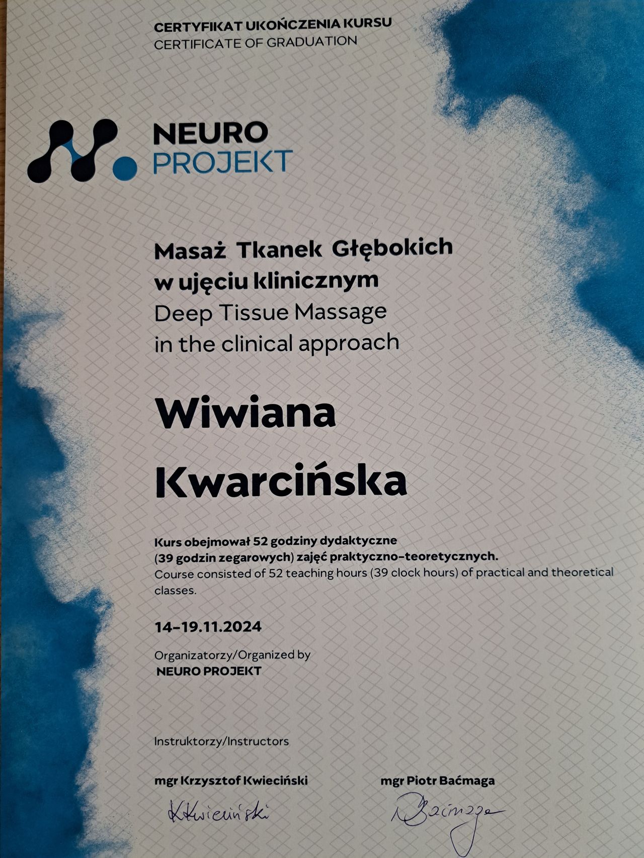 Cały czas podnoszę swoje kwalifikacje, a w przyszłości chcę również wyszkolić się w fizjoterapii wisceralnej.