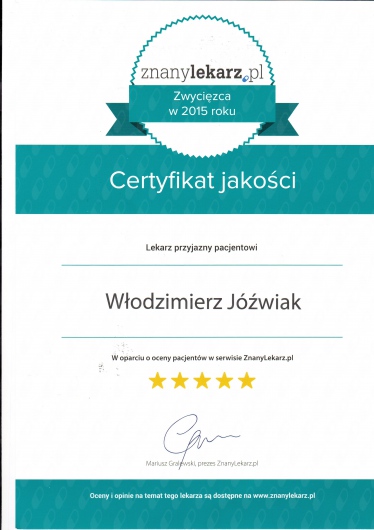 Włodzimierz Jóźwiak: co mówią pacjenci?628 osób dodało swoją opinię. Włodzimierz Jóźwiak ma średnią ocen 5 (na 5 gwiazdek).