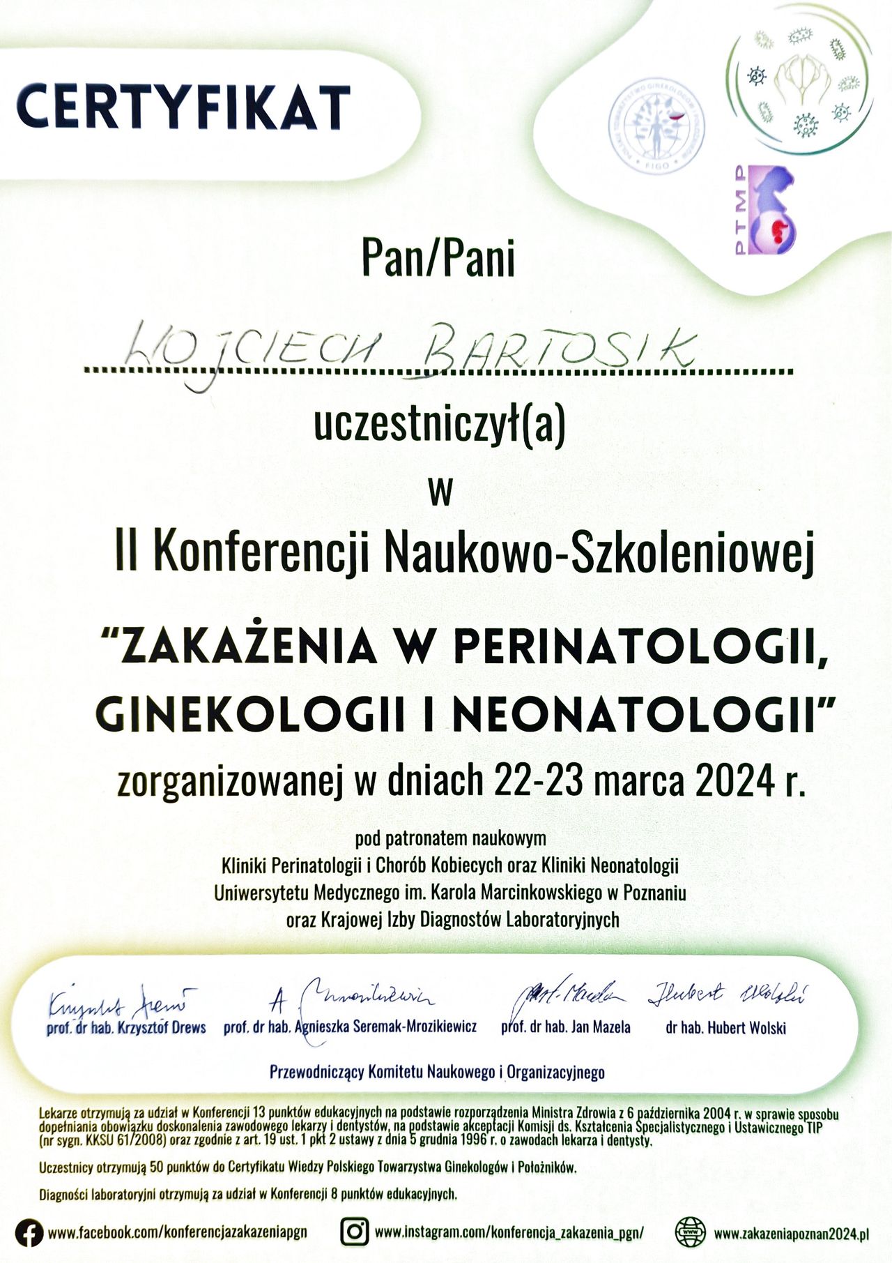 Ukończyłem studia na Wydziale Wojskowo-Lekarskim Uniwersytetu Medycznego w Łodzi. Jestem lekarzem rezydentem w trakcie odbywania szkolenia specjalizacyjnego z zakresu Położnictwa i Ginekologii w Instytucie Centrum Zdrowia Matki Polki w Łodzi. Na bieżąco staram się aktualizować swoją wiedzę poprzez uczestnictwo w kursach, szkoleniach i konferencjach naukowych. Zajmuję się prowadzeniem ciąży, diagnostyką ultrasonograficzną oraz leczeniem schorzeń ginekologicznych.