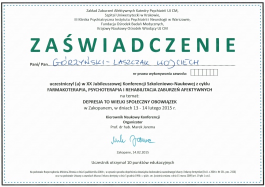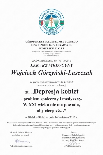O MNIE: Ukończyłem studia medyczne na Wydziale Lekarskim Collegium Medicum Uniwersytetu Jagiellońskiego w Krakowie. Szkolenie specjalistyczne z psychiatrii odbyłem w Szpitalu im. J. Babińskiego w Krakowie. Obecnie pracuję jako lekarz psychiatra wyłącznie w Poradni Zdrowia Psychicznego "Centrum Zmian" w Krakowie.