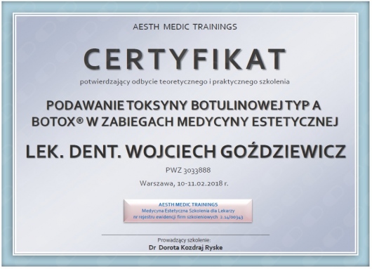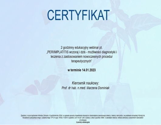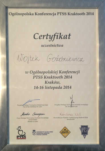 Jestem członkiem Polskiego Towarzystwa Chirurgii Stomatologicznej i Szczękowo-Twarzowej.