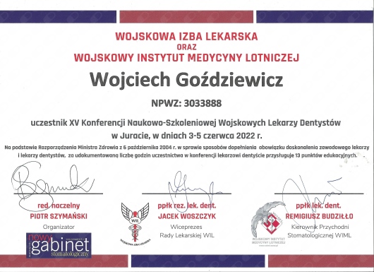 Miałem przyjemność być na konsultacji u dr. Wojciecha Goździewicza i jestem pod ogromnym wrażeniem jego profesjonalizmu, podejścia do pacjenta i ogromnej wiedzy. Pan doktor w spokojny i rzeczowy sposób wyjaśnił mi cały plan leczenia, rozwiał wszystkie wątpliwości i dodatkowo zrobił niezbędne badania do przyszłego zabiegu wszczepienia implantów, który czeka mnie w najbliżej przyszłości. Pan doktor odpowiedział na każde pytanie z cierpliwością i zaangażowaniem. Czuć, że to lekarz z pasją i doświadczeniem, któremu naprawdę zależy na dobru pacjenta. Konsultacja przebiegła w bardzo przyjaznej atmosferze – czuję się zaopiekowany i spokojny przed nadchodzącym zabiegiem. Zdecydowanie polecam!